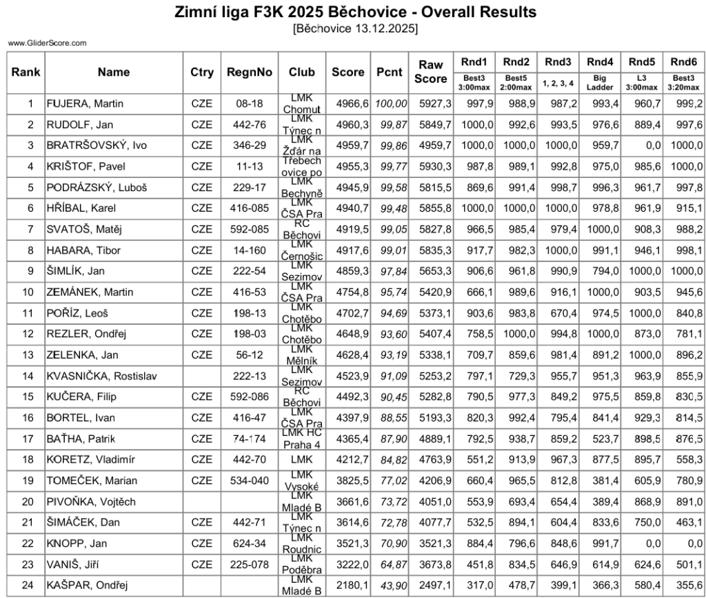 Dne 13.12.2025 proběhlo další kolo „Pražského házedla F3K 2025 – 2026“ na RC letišti u Běchovic.